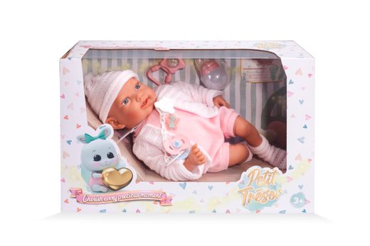 Deja que la imaginación de tu pequeña crezca y florezca con el "BEBE 45 CM VESTIDO ROSA C/ACCESORIOS" de DIMASA JUGUETES. Este adorable muñeco no solo aporta un toque de ternura a las horas de juego, sino que también ayuda a desarrollar habilidades emocionales y de cuidado en los niños.