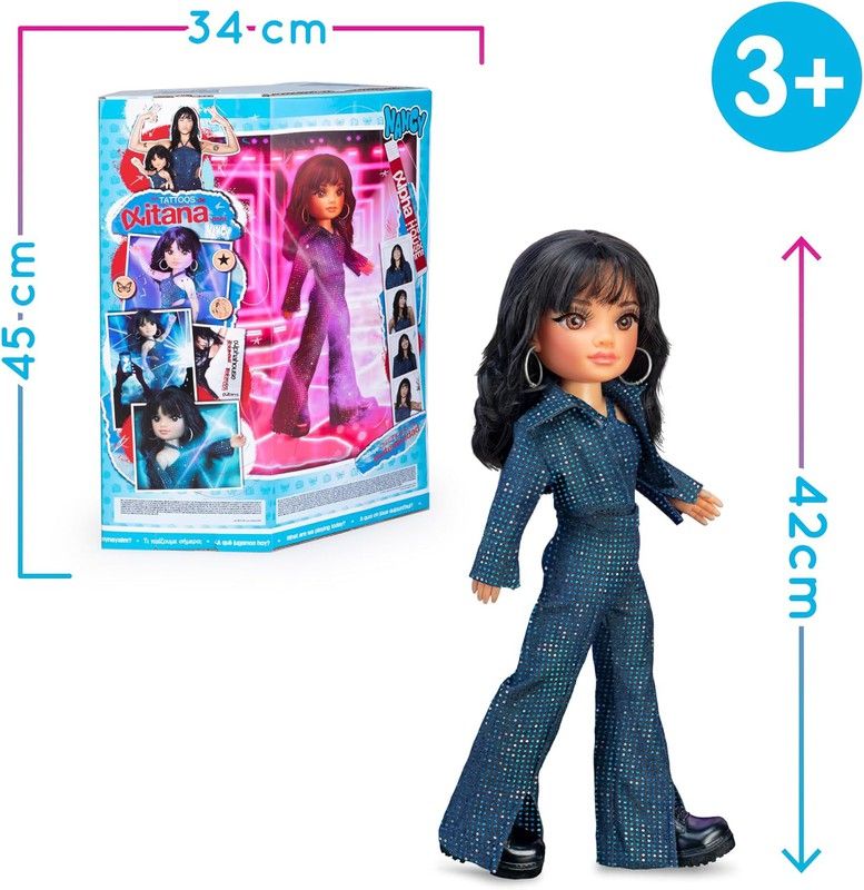 Edición especial de la muñeca de la colección Nancy inspirada en la famosa cantante Aitana en su versión Alphahouse. La muñeca tiene un tamaño de 45 cm de alto, con un llamativo mono de color azul, botas negras y chaqueta a juego. Su pelo negro es como el de Aitana e incluye pendientes. Recomendado a partir de 3 años.