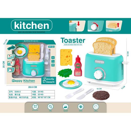 Tostadora azul con comida, luz y sonido - dimasa juguetes